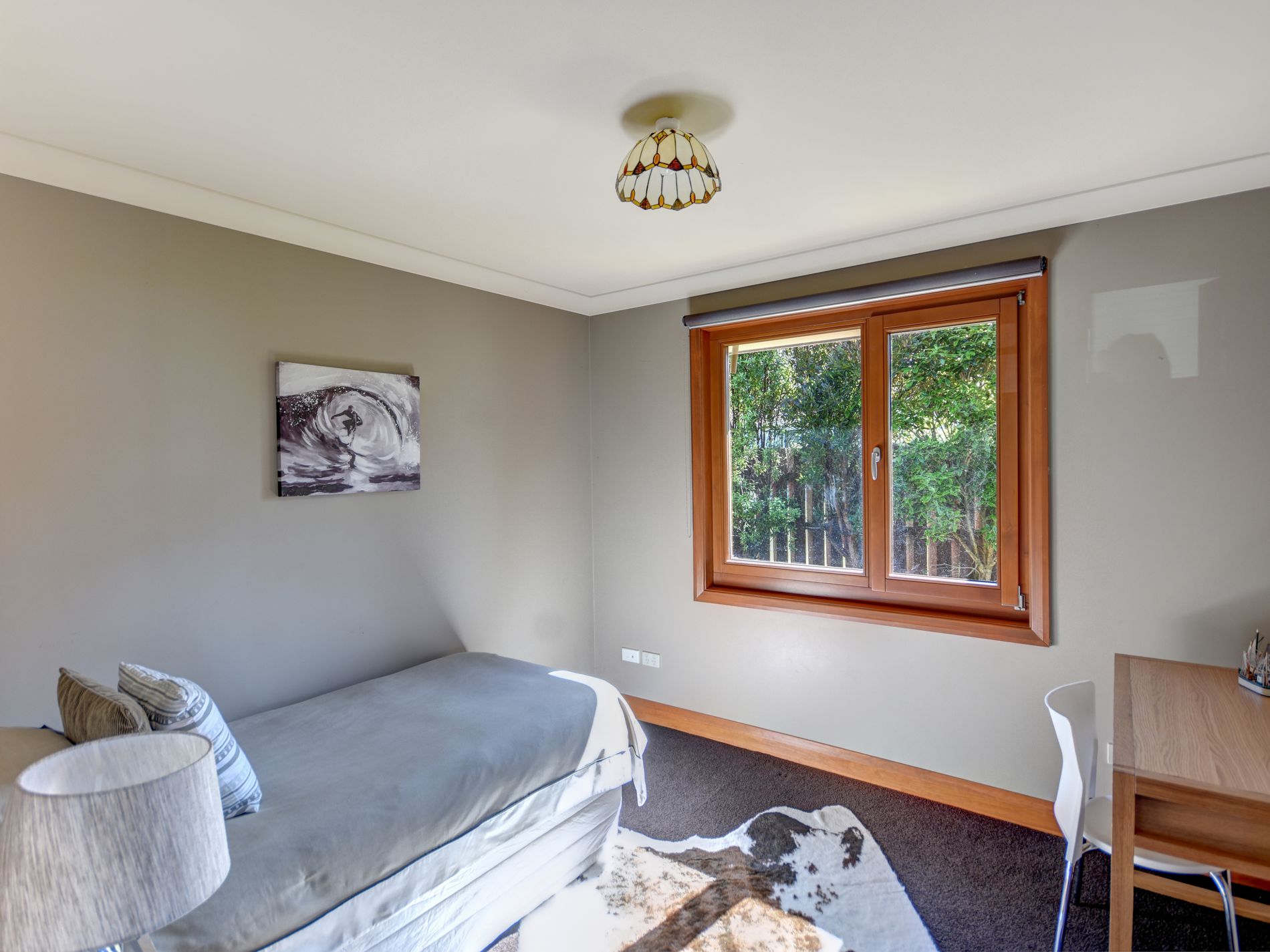 This open plan kitchen - living - dining area is most definitely an entertainer's dream. The exposed aggregate, polished floor lend the house that feel of rigidity, the feeling that this beach house is here to stay forever surveying the waves from among the dunes. The adjacent lounge, as do all the rooms, has those amazing European style, wooden framed windows that have more hinges and moves that Pinocchio on the dance floor, so whether you want to open, or leave ajar, there is a position to suit. The windows are a theme that runs through the 257sm (more or less) of this home and even into the expansive garaging. For those needing to keep their toys under cover there are two double garages and one has extra height clearance for that boat, caravan or SUV with Thule carrier?!